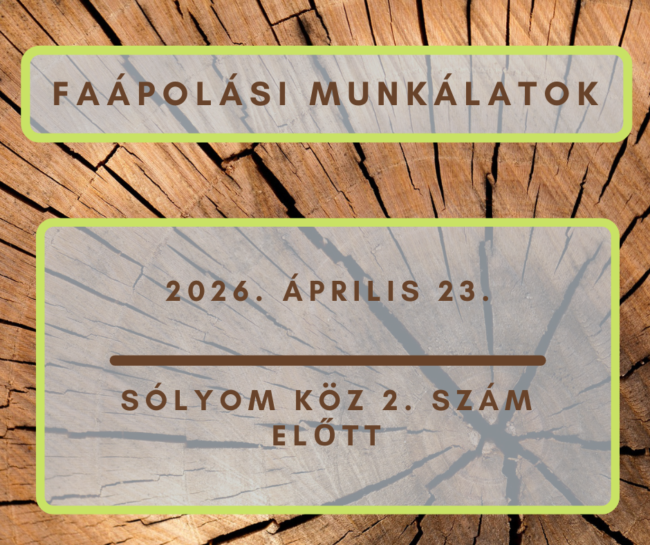 A NYÍRVV Nonprofit Kft. tájékoztatja a Tisztelt Lakosságot, hogy 2026. április 23. napján, csütörtökön a Sólyom köz 2. szám előtt faápolási munkálatokra kerül sor.