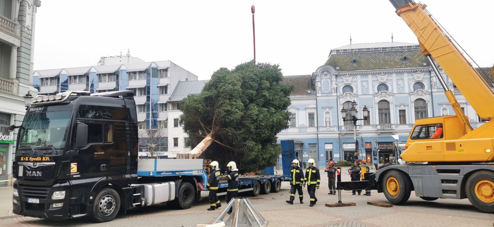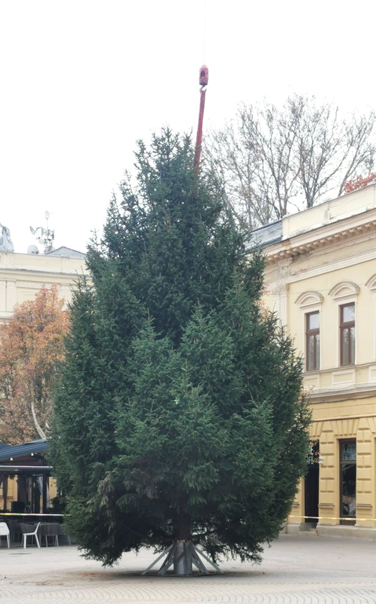 A NYÍRVV Nonprofit Kft. munkatársai idén is gondosan kiválasztották azt a fenyőt, amely méltón képviselheti a város karácsonyfáját. A gyönyörű lucfenyő a mai napon került felállításra a Kossuth téren, ahol hamarosan ünnepi díszbe öltözve fogadja majd a nyíregyháziakat és a város vendégeit.